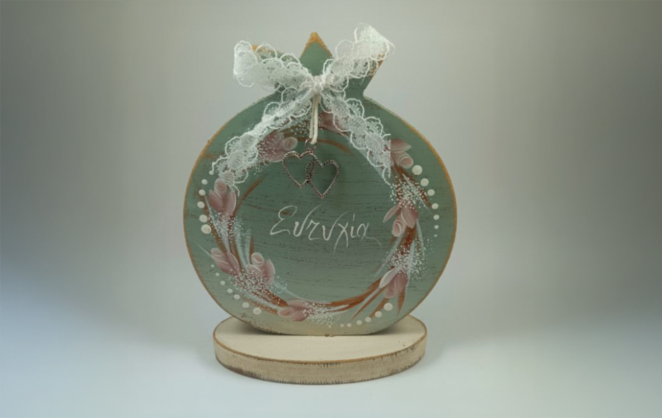 Ξύλινο χειροποίητο επιτραπεζιο ρόδι, ζωγραφισμένο στο χέρι.
